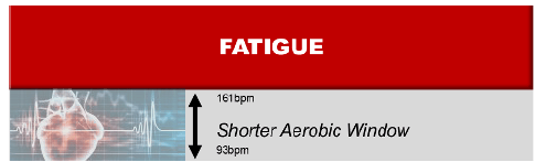Conversely, those of us with poorer levels of conditioning have smaller aerobic systems, lower anaerobic thresholds and and a higher RHR. This means we are not as efficient with oxygen, are under more stress at rest and have a smaller aerobic window.