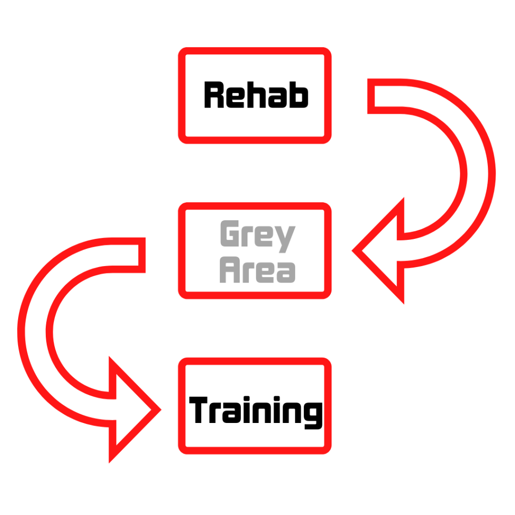 Here at Tier 1, we get asked this question a lot, like a hell of a lot! People are always getting in touch asking if us if it would best to see Stuart or Ollie (our Therapists) or Jon (Our Coach) for exercise prescription, coaching and training. The reason for these questions appears to be that there is seemingly a grey area in people’s minds as to where the point of injury rehabilitation stops and the return to training begins.